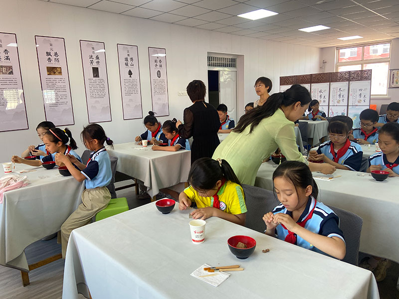 8、5月29日,開展非遺進校園,走進清苑三小,香藝師講解古法篆香并讓孩子們動手體驗