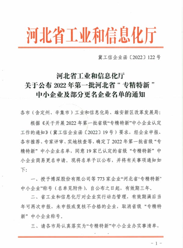 2022年3月19日,河北省工業(yè)和信息化廳公布了2022年河北省“專(zhuān)精特新”中小企業(yè)名單,河北古城香業(yè)集團(tuán)股份有限公司被認(rèn)定為“專(zhuān)精特新”企業(yè)。