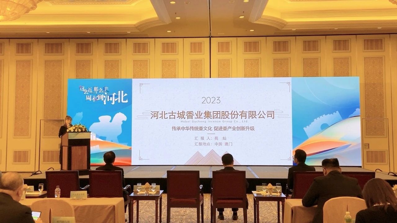 6月30日,十一屆澳門國際旅游(產業)博覽會開幕,河北古城香業集團股份有限公司受邀參展。此次參展產品有香暖博山晚安香、古典香方系列、七寶嗅迷鼻嗅器、蓮花清香、香牌、香梳等香文化產品。香藝師現場展示古法篆香,這項傳承千年的熏香藝術受到觀眾的歡迎。古城香業還參加了“這么近,那么美,周末到河北”的推介活動,介紹中國香城香文化產業園區項目,傳承中國傳統香文化,促進香產業轉型升級。